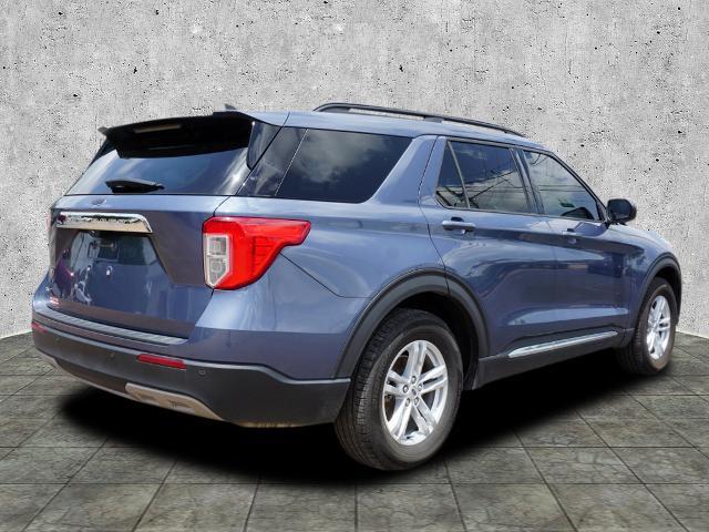 CARFAX One-Owner. Blue 2021 Ford Explorer XLT RWD 10-Speed Automatic 2.3L EcoBoost I-4 4-Wheel Disc Brakes ABS brakes Acoustic-Laminated Front Side Windows ActiveX Captain's Chairs AM/FM radio: SiriusXM AM/FM Stereo Auto High-beam Headlights Automatic temperature control Brake assist Bumpers: body-color Delay-off headlights Dual front side impact airbags Electronic Stability Control Equipment Group 202A Exterior Parking Camera Rear FordPass Connect Four wheel independent suspension Front Bucket Seats Front dual zone A/C Heated door mirrors Heated front seats Heated Steering Wheel Knee airbag LED Fog Lamps Occupant sensing airbag Power door mirrors Power driver seat Power Liftgate Power passenger seat Rear air conditioning Remote keyless entry Remote Start System Roof rack: rails only Speed-sensing steering Speed-Sensitive Wipers Steering wheel mounted audio controls SYNC 3 Communications & Entertainment System SYNC 3/Apple CarPlay/Android Auto Wheels: 18"" 5-Spoke Sparkle Silver-Painted Alum.Recent Arrival! 21/28 City/Highway MPG